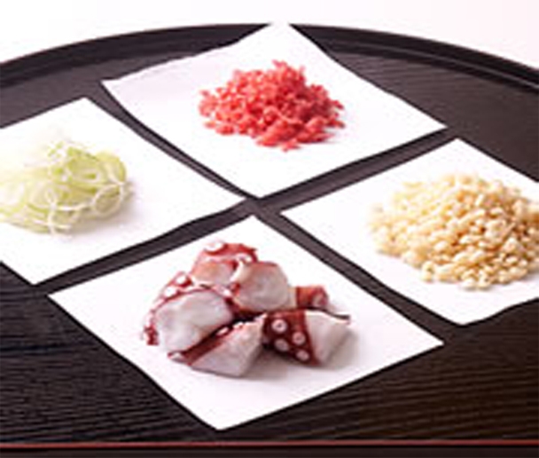 银章鱼对于托品顶料也非常考究。青海苔我们精挑细选比较细、比较软、比较香的。使用的鰹鱼末味美诱人 ,能够将烤章鱼小丸子的鲜美发挥到极致。而且鰹鱼末的制作方法 也非常考究。我们把花鰹鱼末削成更细小,更适合美味可口的烤章鱼小丸子。