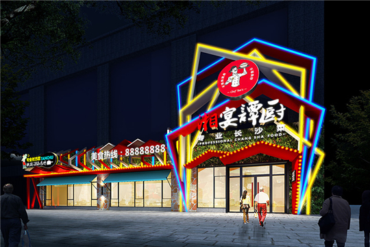 谭之厨总部专业设计师根据加盟商的店面实际结构,统一按湘宴形象进行规划设计,同时制定完美的空间设计方案,体现比较佳客容率,做到有限空间无限利用。加盟商需支付一定服务费用。