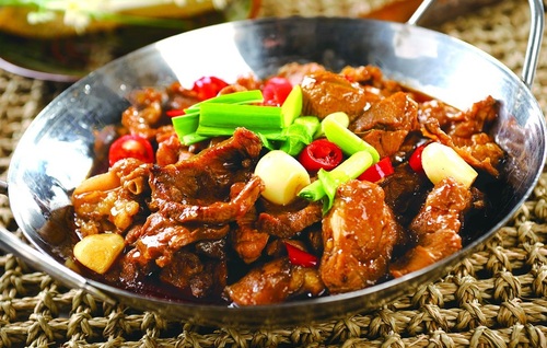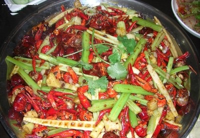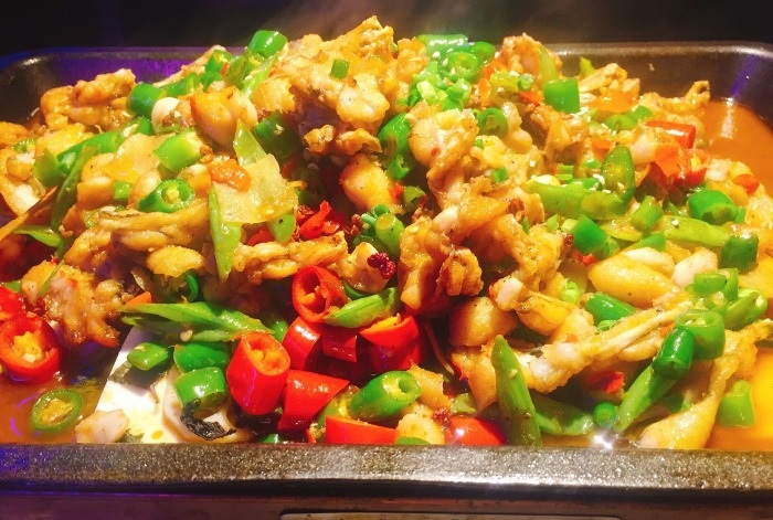 逗蛙,肥滑细嫩的鱼头和细嫩入味的美蛙是其招牌特色,美蛙均选取上等肉蛙,蛙肉洁白细嫩,营养丰富,是高蛋白、低脂肪的滋补佳品!鱼头和美蛙的完美组合,再加上辣而不燥、香而不腻的汤底,造就了这道特色美食。汤底鲜香,底料的鲜美尽煨蛙中,久食而不上火,口味麻辣醇厚,回味悠长。