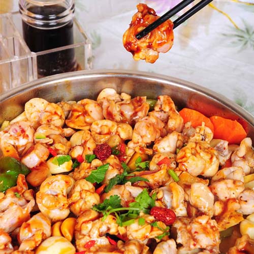 黄记煌旗下品牌。鸡肉和牛杂两掺锅,首先值得肯定的是做的很入味,这是焖锅比较重要的,鸡肉很嫩,感觉牛蛙选材都是骨头的。蔬菜可以选拼盘,豆皮和金针菇煮透了比肉还入味!店铺干净卫生,价格很实惠。